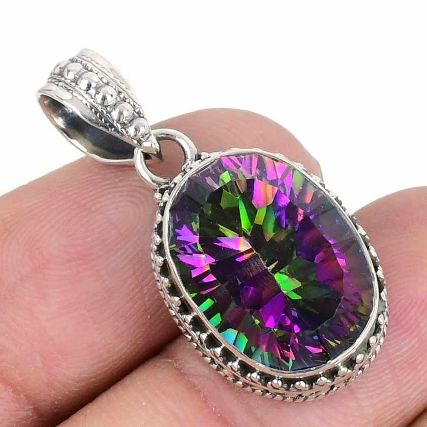 Natural Rainbow Mystic Topaz 925 Silver Daughters Day Wife Handmade New Pendant