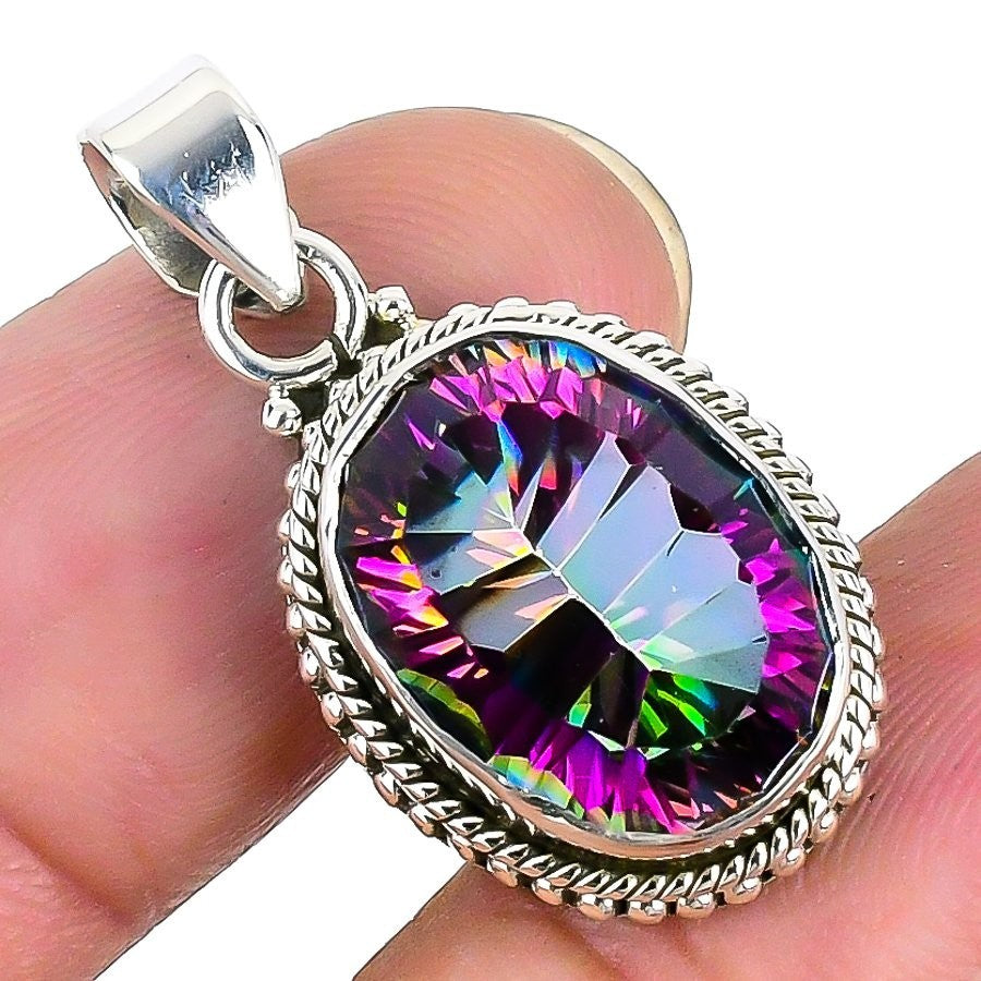 Natural Rainbow Mystic Topaz 925 Solid Silver Daughter Engagement Trendy Pendant