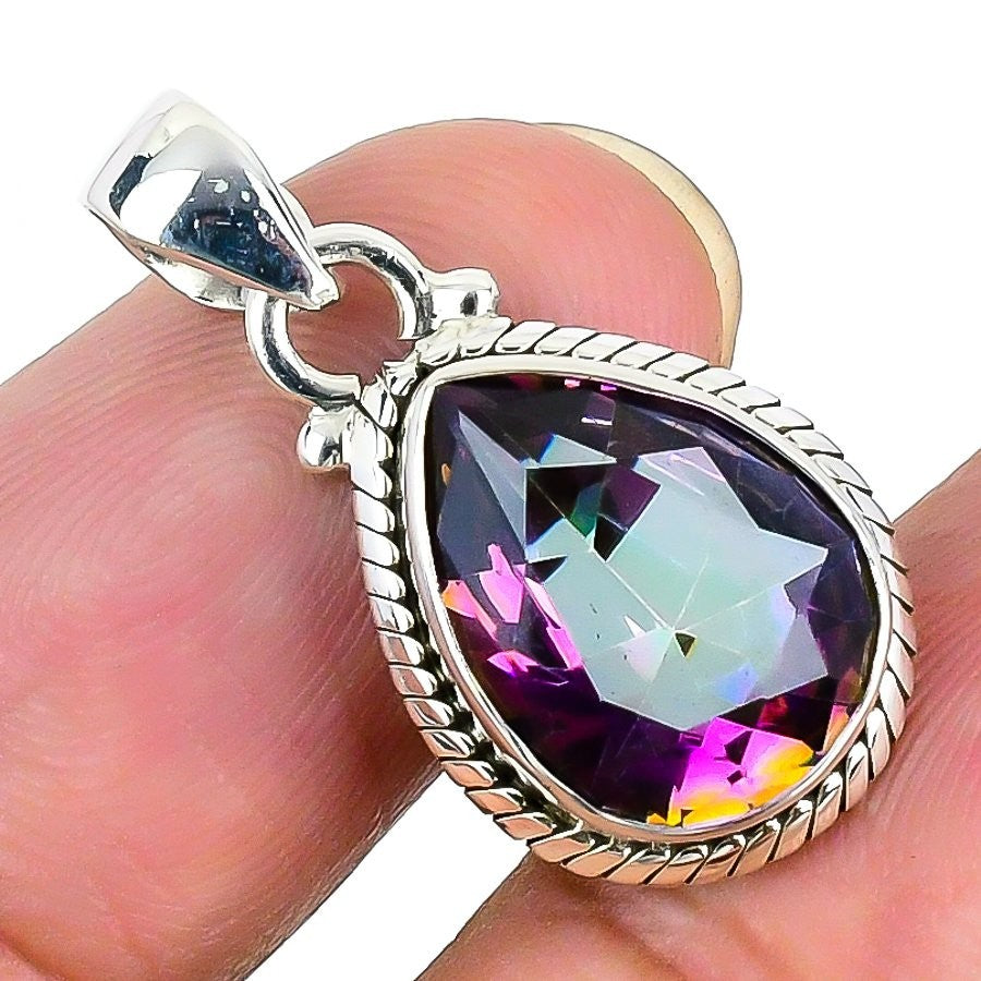 Natural Rainbow Mystic Topaz Anniversary Handcrafted Wife Pendant Solid Silver