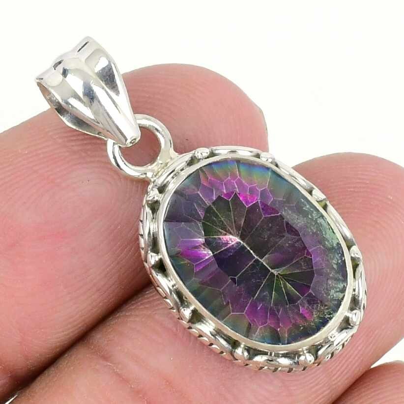 Natural Rainbow Mystic Topaz Wedding Unique Mother Pendant 925 Sterling Silver