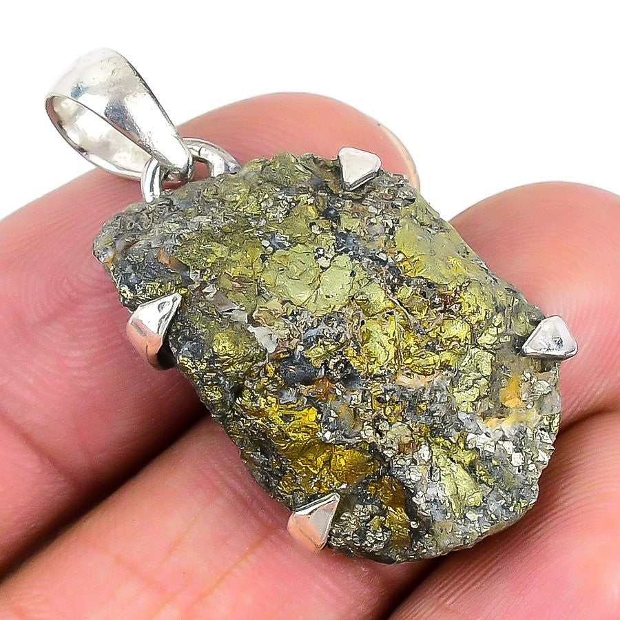 Natural Rainbow Pyrite Druzy Wedding Daughter Boho Pendant Solid Sterling Silver