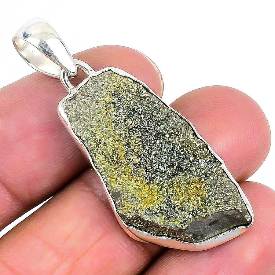 Natural Rainbow Pyrite Druzy Wife Wedding Pendant Jewelry Solid Sterling Silver