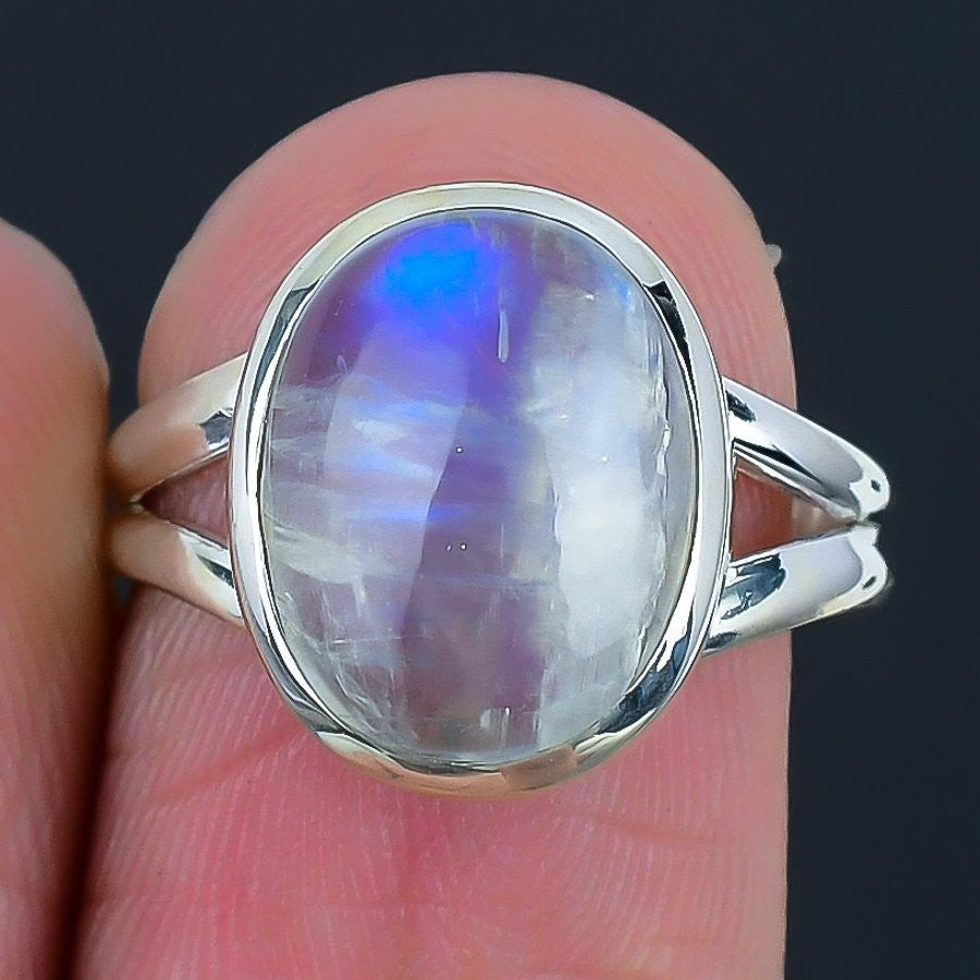 Natural rainbow Rainbow Moonstone 925 Silver Wedding Cluster Ring Jewelry Size 7