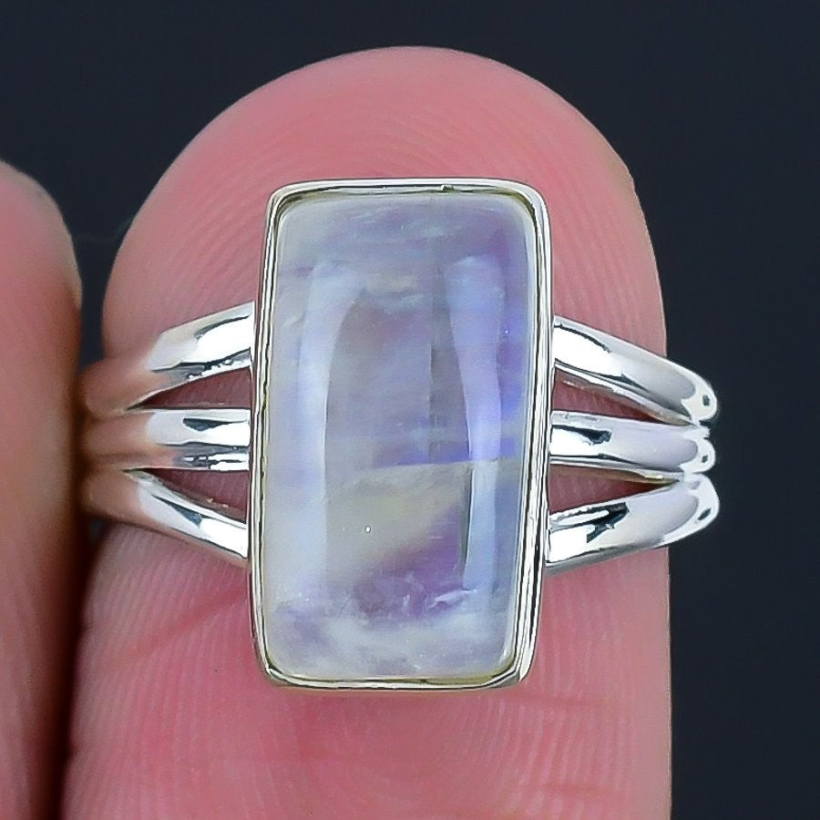 Elegant Natural Rainbow Rainbow Moonstone 925 Solid Silver i