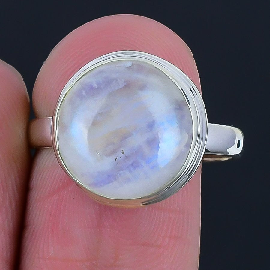 Natural Rainbow Rainbow Moonstone 925 Sterling Silver Boho Cluster Ring Jewelry