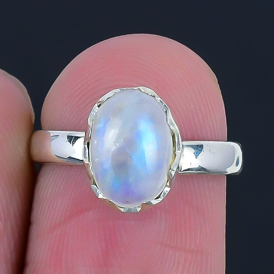 Natural Rainbow Rainbow Moonstone Cluster Ring Jewelry Size 6 Sterling Silver