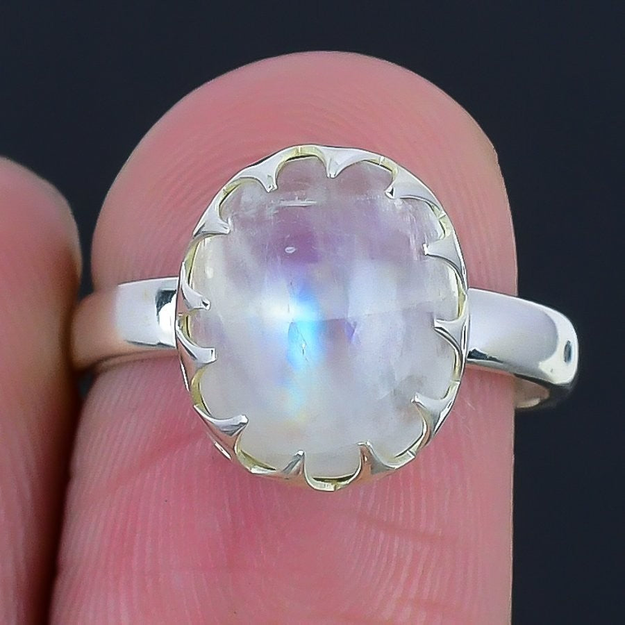 Natural Rainbow Rainbow Moonstone Daughter Cluster Ring Size 7 Sterling Silver