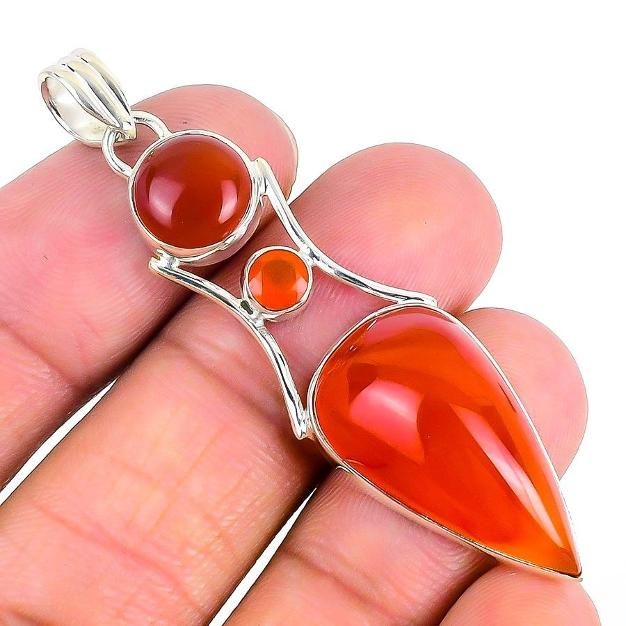 Natural Red Carnelian 925 Solid Silver Bezel Sacral Chakra Wife Pendant Jewelry