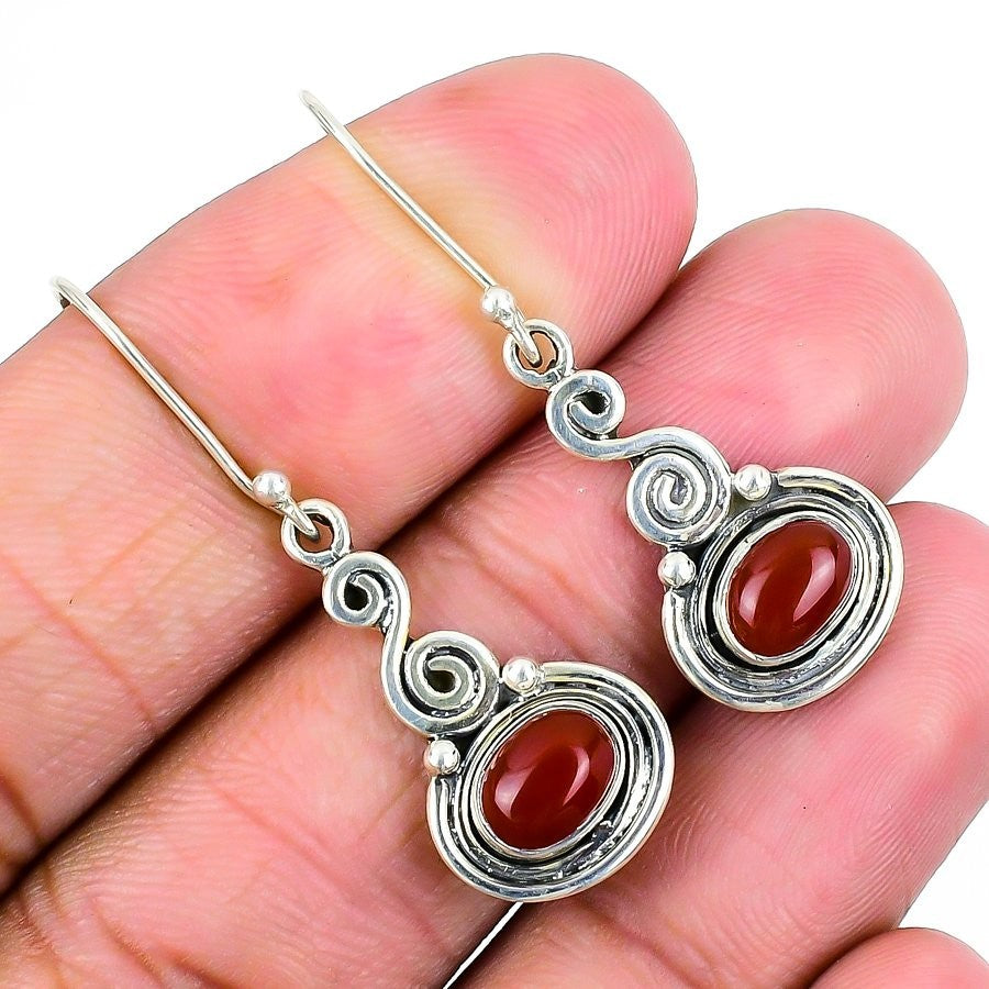 Natural Red Carnelian Birthday Boho Drop Hook Sister Earrings 925 Solid Silver