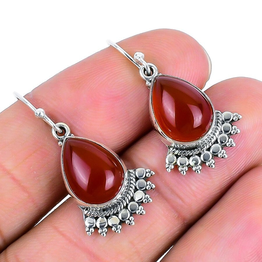 Elegant Natural Red Carnelian Solid Sterling Silver Drop in