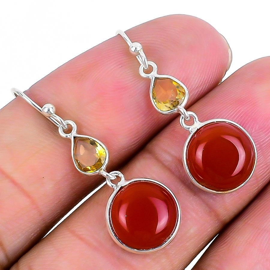Natural Red Carnelian Solid Sterling Silver Handcrafted Dangling Boho Earrings