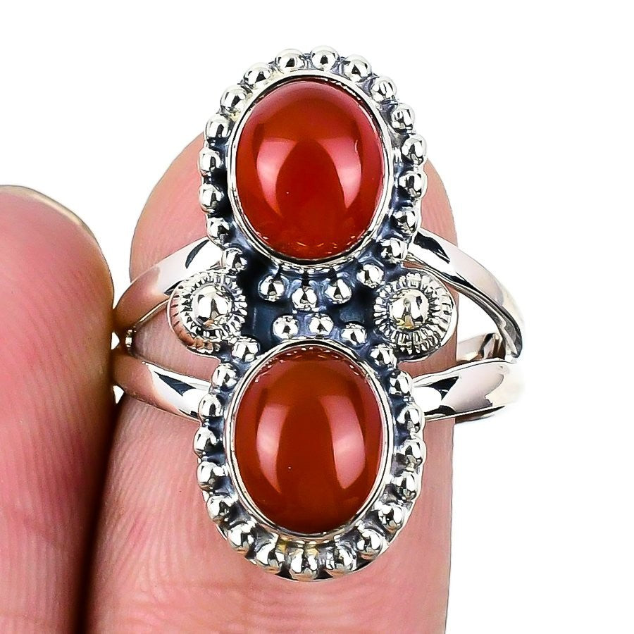 Natural Red Carnelian Trendy Statement Art Deco Ring Jewelry 925 Sterling Silver