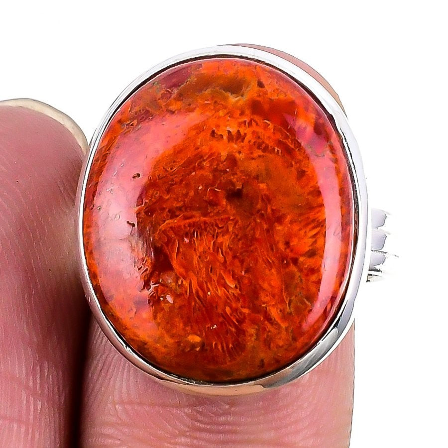 Natural Red Coral Engagement Boho Statement Ring Jewelry 925 Solid Silver US 6.5