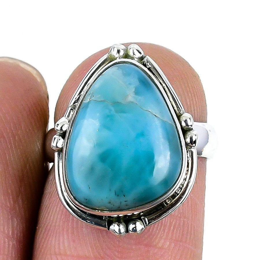 Natural Republic Larimar 925 Silver Handmade Statement Anniversary Ring Size 6