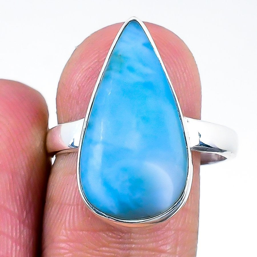 Natural Republic Larimar 925 Solid Silver Wedding Statement Band Ring Jewelry