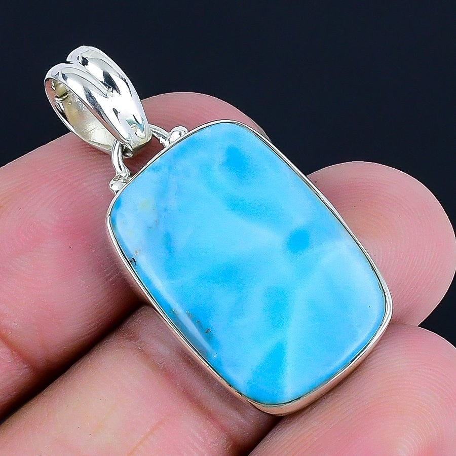 Natural Republic Larimar 925 Sterling Silver Channel Set Unique Sister Pendant