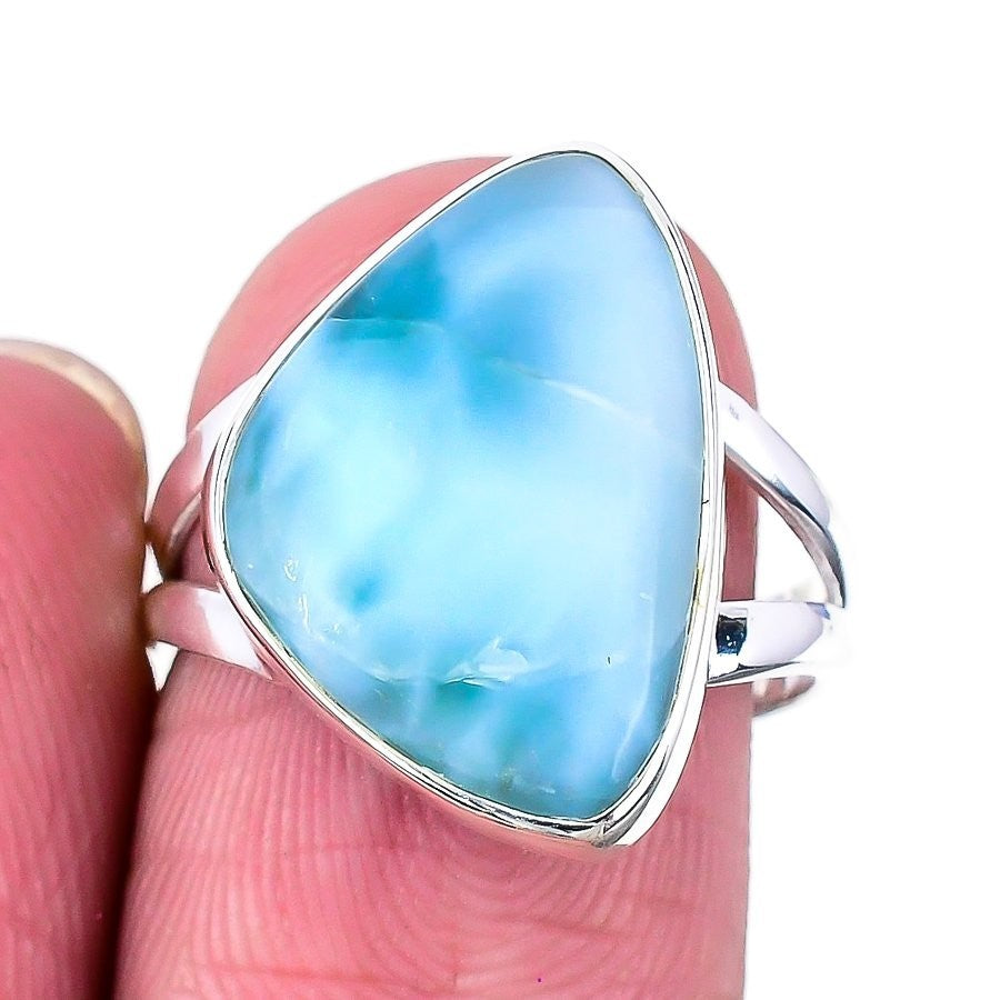 Natural Republic Larimar 925 Sterling Silver Cluster Birthday Wife Ring Size 8