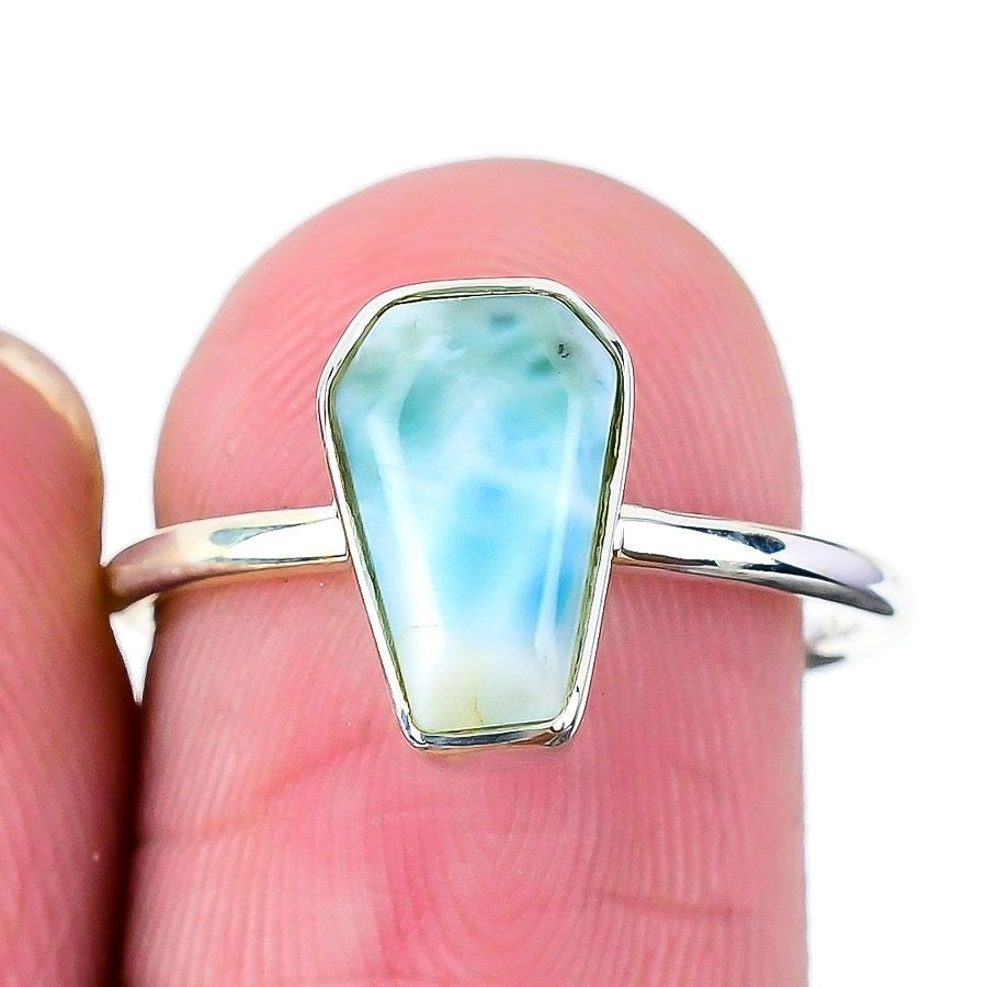 Natural Republic Larimar 925 Sterling Silver Daughter Cluster Trendy Ring Size 7