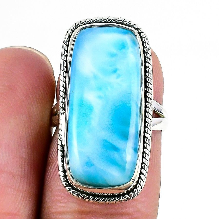 Natural Republic Larimar 925 Sterling Silver Wedding Wife Statement Ring US 5.5