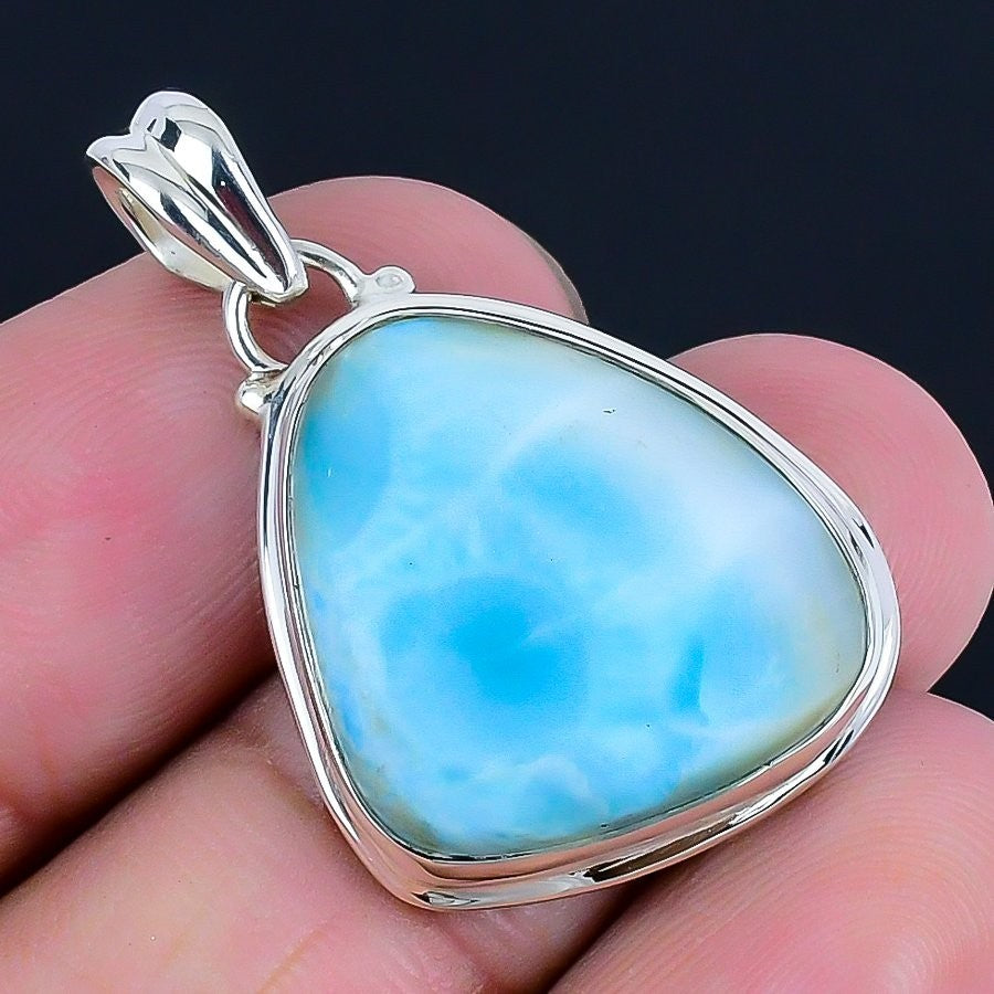 Natural Republic Larimar Solid Silver Elegant Engagement Mother Pendant Jewelry