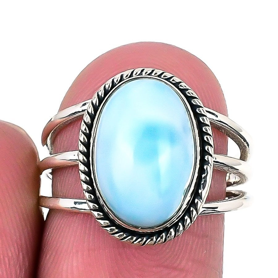 Natural Republic Larimar Solid Sterling Silver Handmade Statement Ring Size 8