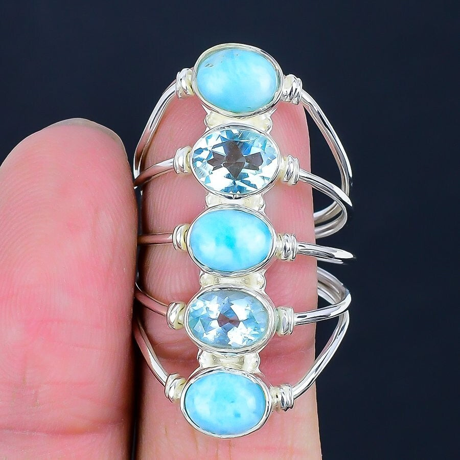 Natural Republic Larimar Sterling Silver Mother Cluster Wedding New Ring Size 10