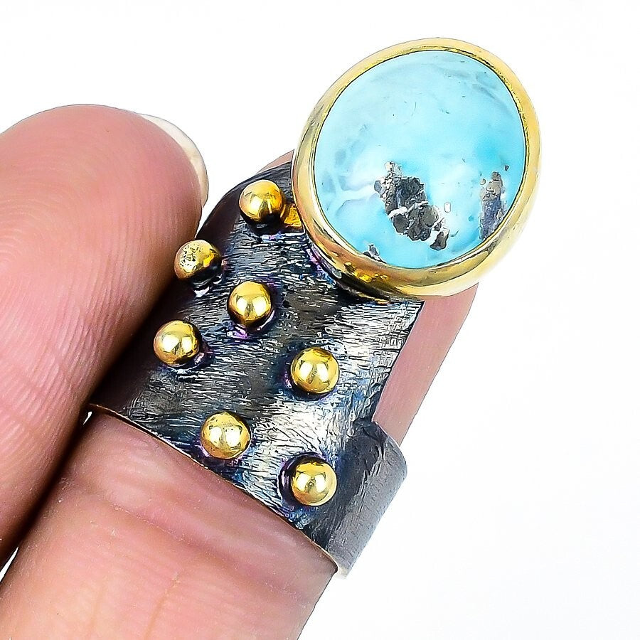Natural Republic Larimar Sterling Silver Statement Engagement Wedding Ring US 8