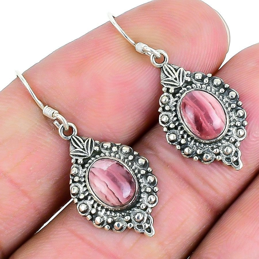 Natural Rhodochrosite 925 Silver Artisan Sister Dangle Drop Engagement Earrings