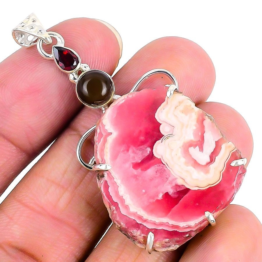 Natural Rhodochrosite 925 Silver Daughters Day Bezel Sister Boho Pendant Jewelry