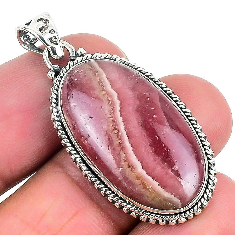 Natural Rhodochrosite 925 Sterling Silver Heart Chakra Elegant Pendant Jewelry