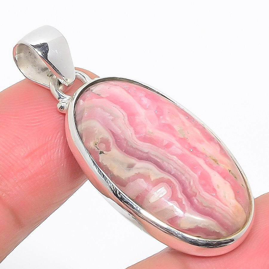 Natural Rhodochrosite Womens Gift Heart Chakra Birthday Pendant 925 Solid Silver