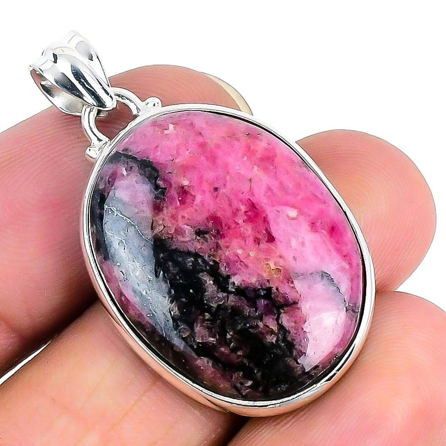 Natural Rhodonite 925 Solid Silver Bezel Elegant Art Deco Wife Pendant Jewelry