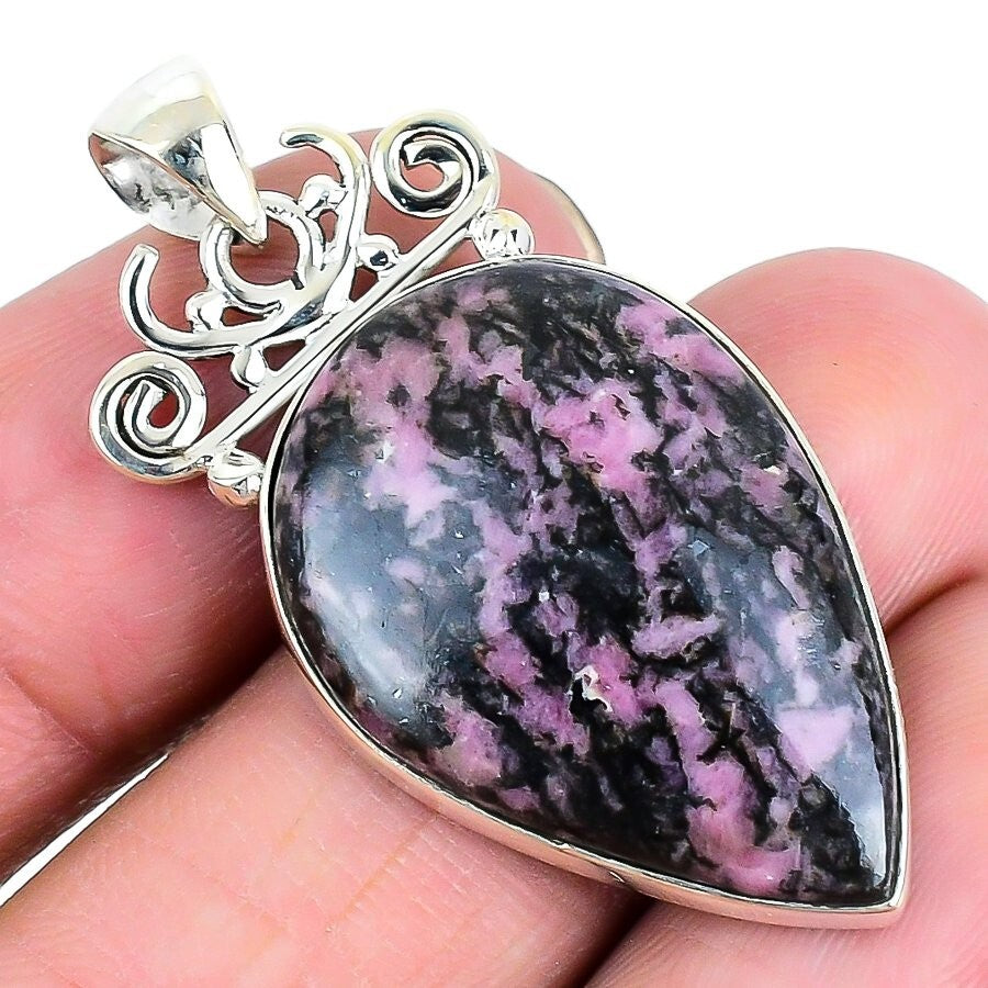 Natural Rhodonite 925 Solid Silver Bezel Mother Trendy Unique Pendant Jewelry