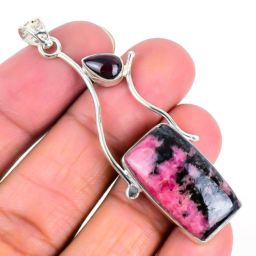 Natural Rhodonite 925 Solid Silver Birthday Art Deco Daughter Pendant Jewelry