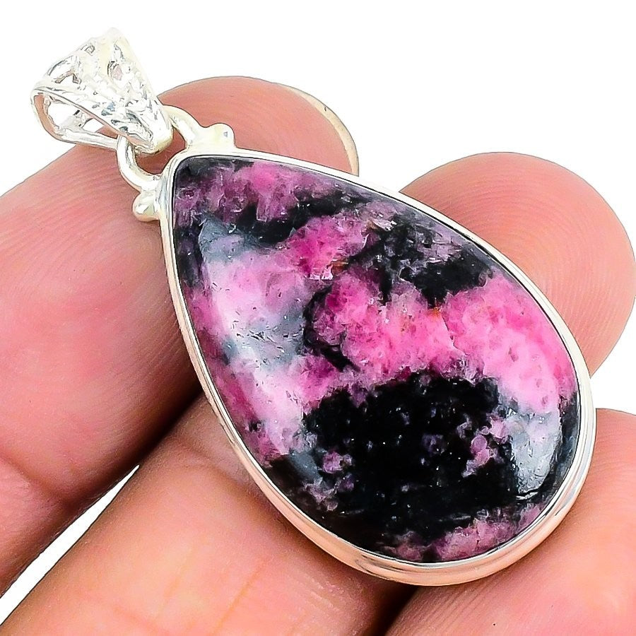 Natural Rhodonite Heart Chakra Bezel Unique Pendant Jewelry 925 Sterling Silver