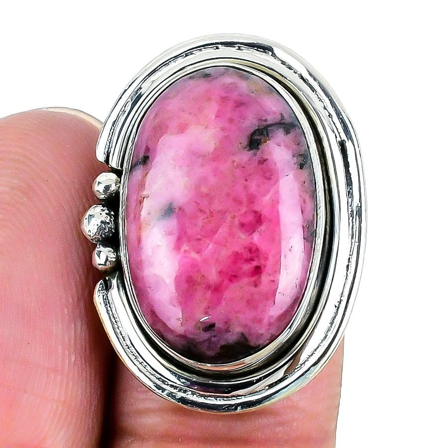 Elegant Natural Rhodonite Solid Silver Birthday Boho Stateme