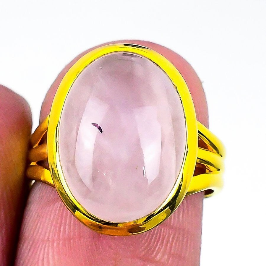 Natural Rose Quartz 925 Silver New Sister Wedding Band Handcrafted Ring Size 6.5