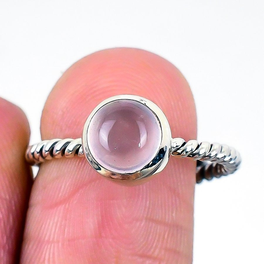 Natural Rose Quartz 925 Solid Silver Birthday Boho Artisan Band New Ring Jewelry