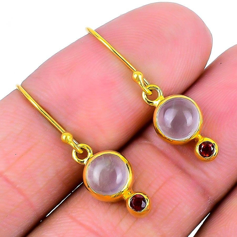 Natural Rose Quartz 925 Solid Silver Gold Vermeil Dangle Drop Earrings Jewelry