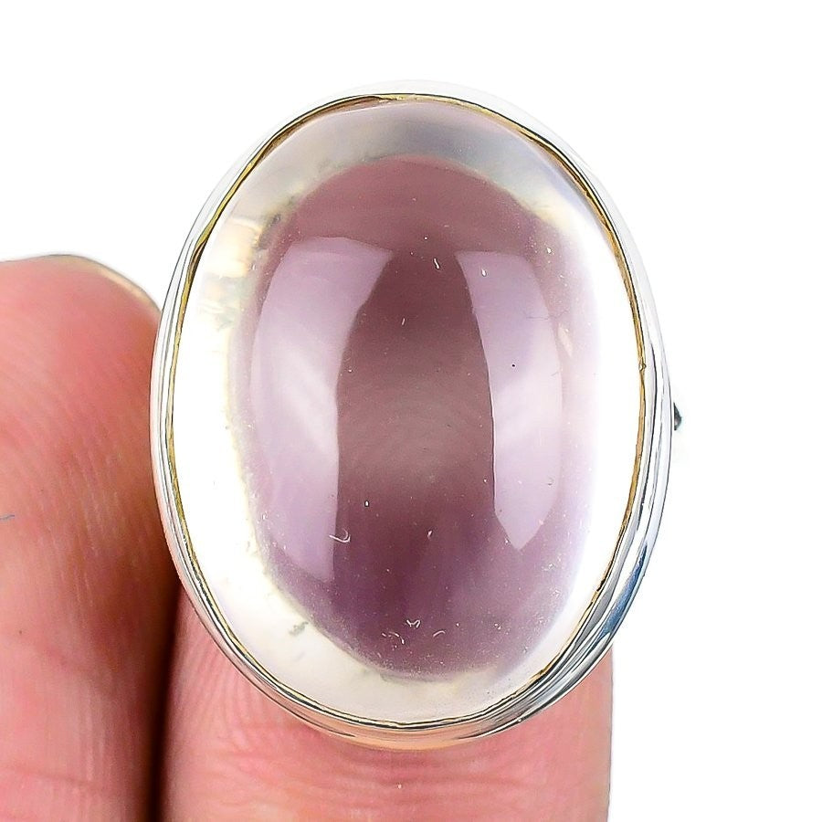 Natural Rose Quartz 925 Solid Silver Statement Friendship Day Ring Jewelry US 8