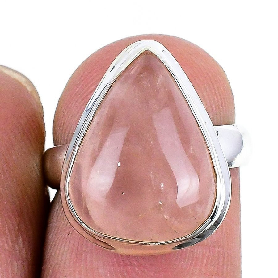 Natural Rose Quartz 925�Solid�Silver Statement Sisters Day Ring Jewelry US 5.5