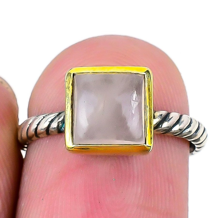 Natural Rose Quartz 925 Solid Silver Statement Trendy Wife Ring Jewelry Size 6.5