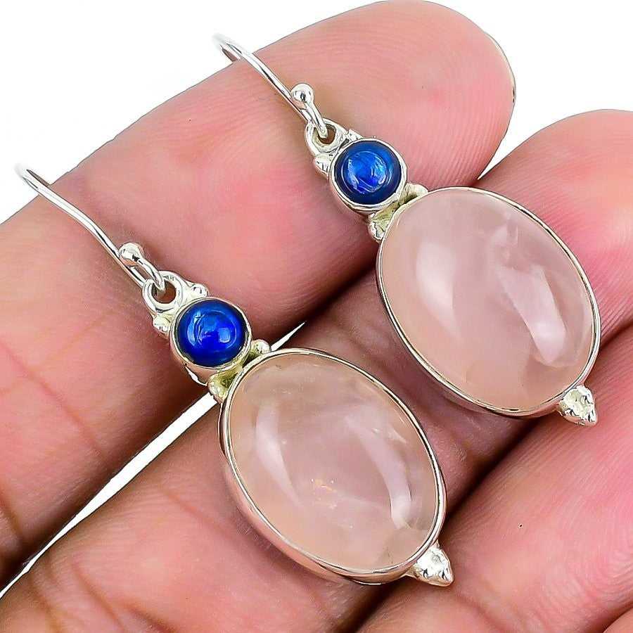 Natural Rose Quartz 925 Sterling Silver Dangle Best Friend Gift Earrings Jewelry
