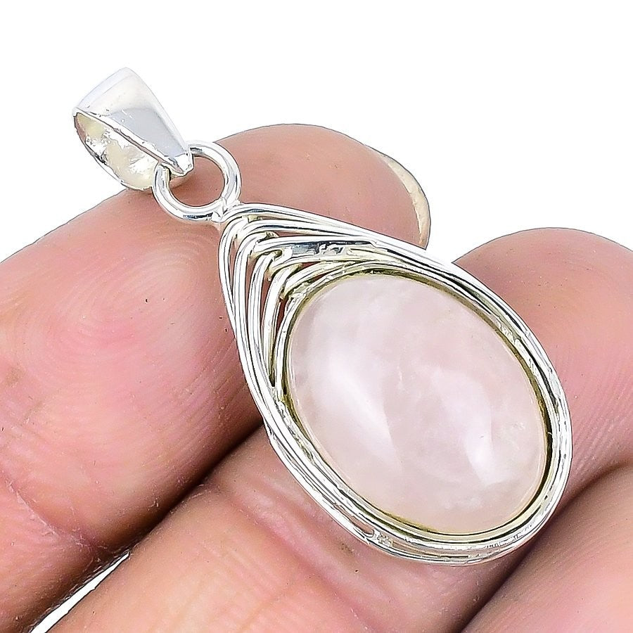 Natural Rose Quartz 925 Sterling Silver Daughters Day Ethnic Mother Boho Pendant