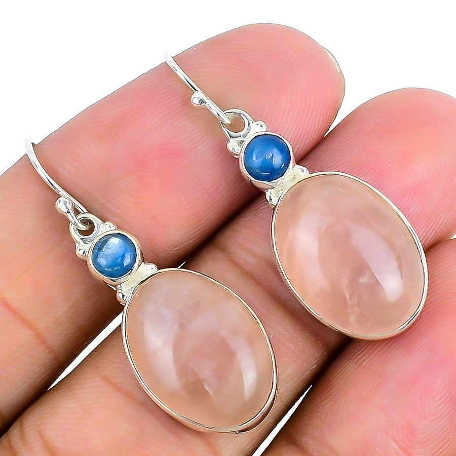 Natural Rose Quartz Anniversary Hook Wedding Drop Earrings Solid Sterling Silver