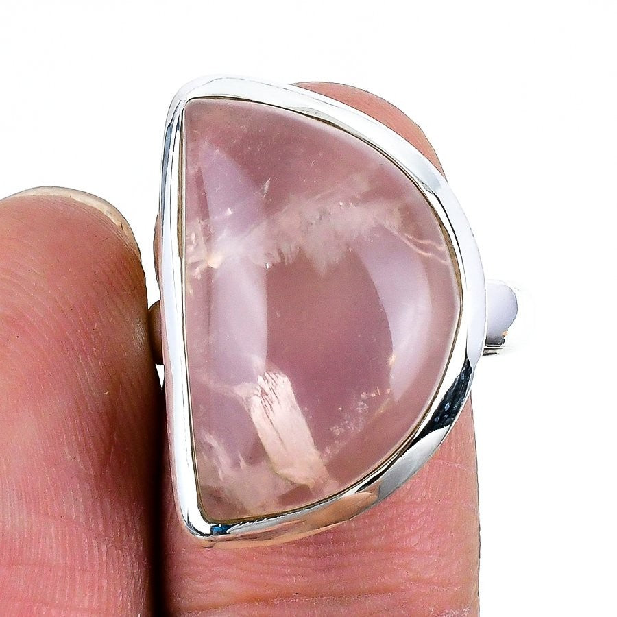 Natural Rose Quartz Anniversary Statement Artisan Birthday Ring 925 Solid Silver