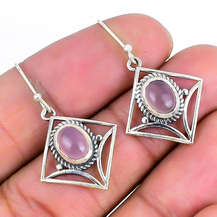 Natural Rose Quartz Anniversary Wedding Drop Engagement Earrings Sterling Silver