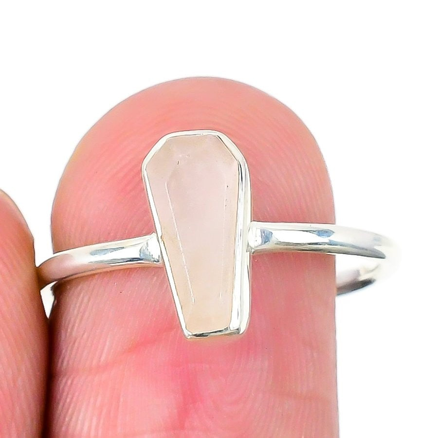 Natural Rose Quartz Artisan Statement Ring Jewelry Solid Sterling Silver US 8.5