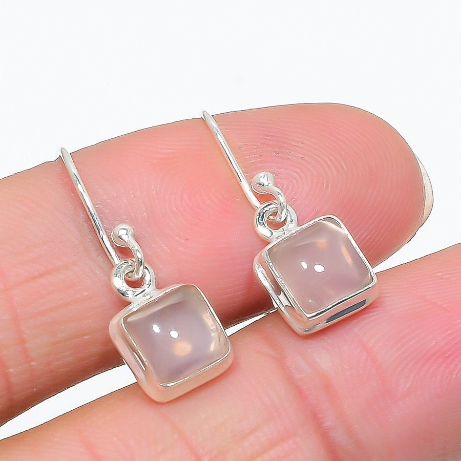 Natural Rose Quartz Handmade Dangling Best Friend Gift Earrings 925�Solid�Silver