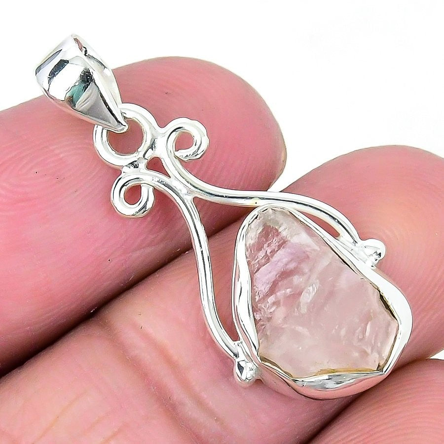 Natural Rose Quartz Mother Channel Set Elegant New Pendant Solid Sterling Silver